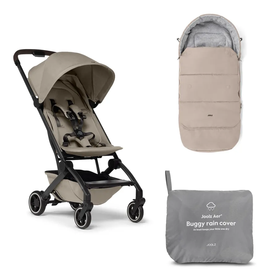 Pachet cărucior sport ultracompact Joolz Aer+ Sandy Taupe cu organizator, sac și suport de pahar include tot ce ai nevoie pentru plimbări funcționale și confortabile, combinând manevrabilitatea ușoară și designul elegant al căruciorului Aer+ cu un organizator practic pentru accesoriile tale, un sac generos pentru depozitare și un suport convenabil pentru pahar, se pliază rapid cu o singură mână, dispune de copertină de soare UPF 50+, spătar ergonomic patentat pentru confort și susținere optimă, roți stabile și finisaje premium în nuanța Sandy Taupe, oferind o experiență completă și plăcută la fiecare plimbare.