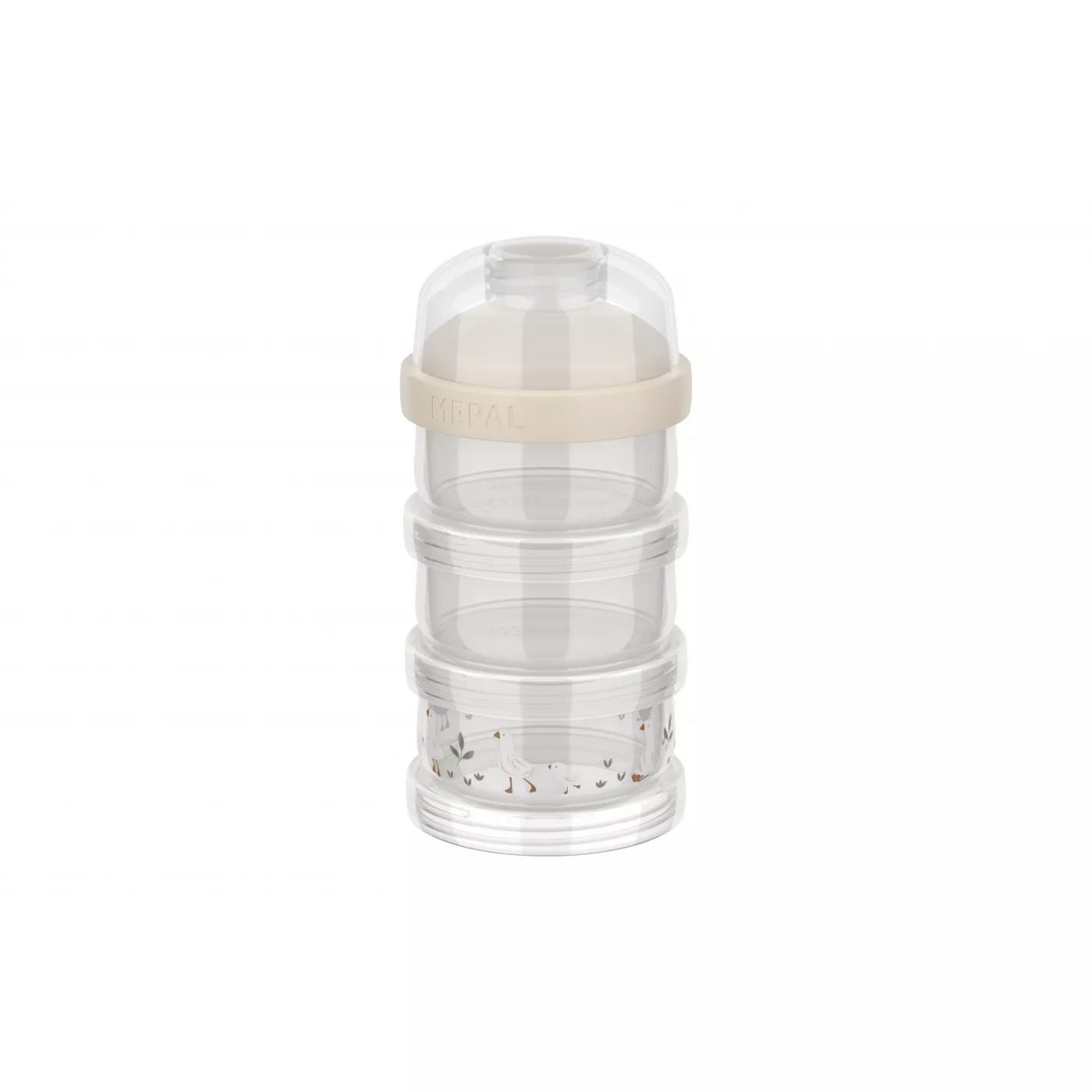 Turnulețul pentru lapte praf Mepal Mio Little Goose are 3 compartimente etanșe de 120 ml, ușor de stivuit și ideale pentru deplasări. Capacul cu cioc permite turnare curată. Fără BPA, compatibil cu frigiderul, congelatorul, microundele și mașina de spălat vase.