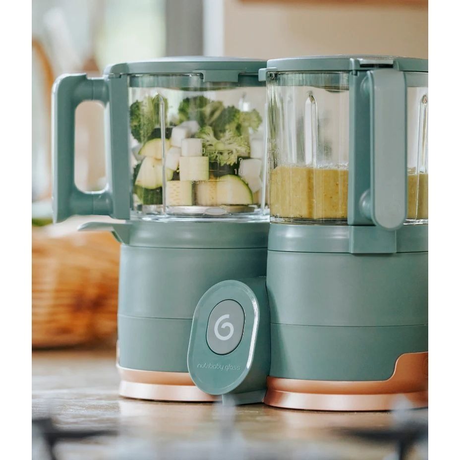 "Robotul multifuncțional Nutribaby Glass Babymoov este ideal pentru prepararea meselor sănătoase pentru bebeluși și întreaga familie. Fabricat din sticlă și oțel inoxidabil, este eco-friendly și complet reparabil. Are 4 funcții: gătire la abur, blenduire, încălzire și decongelare. Capacitate totală 1,5 L (1.000 ml gătire, 500 ml blenduire). Recipientele separate permit gătirea simultană a mai multor alimente, păstrând nutrienții. Ușor de utilizat, toate funcțiile se controlează cu un singur buton. Curățare simplă: componentele detasabile se pot spăla la mașina de spălat vase (exclus partea electrică).