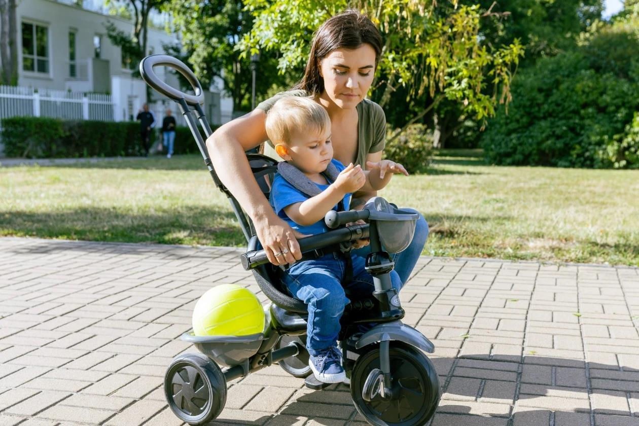 "Детский велосипед Qplay Cosy идеально подходит для маленьких исследователей и выдерживает вес до 25 кг. Он имеет прочную стальную раму и колеса из материала EVA для устойчивости и долговечности. Велосипед оснащен ящиком для игрушек, регулируемой ручкой для родителей, солнцезащитным козырьком, подлокотниками и подножкой, обеспечивая комфорт и безопасность. Вес: 7,2 кг; размеры: 92 x 50 x 96 см.